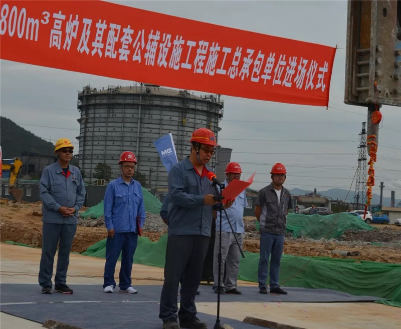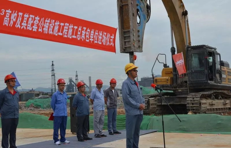 山冶設(shè)計(jì)黨委書(shū)記谷卓奇、萊蕪三控冶金建設(shè)監(jiān)理事務(wù)所經(jīng)理沈桂聯(lián)、中國(guó)二十冶集團(tuán)有限公司高爐項(xiàng)目部項(xiàng)目經(jīng)理任茂盛分別代表總承包單位、施工監(jiān)理、施工單位致辭,最后山鋼股份萊蕪分公司煉鐵廠黨委書(shū)記、高爐項(xiàng)目部經(jīng)理孫建設(shè)宣布:“山鋼股份萊蕪分公司新舊動(dòng)能轉(zhuǎn)換項(xiàng)目新建2×3800立方米高爐及其配套公輔設(shè)施工程施工總承包單位進(jìn)場(chǎng)!”