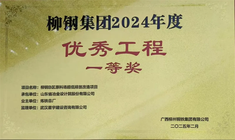 由山冶設計EPC總承包的柳鋼B區原料場超低排放改造項目成績斐然,榮獲廣西柳鋼集團2024年度優秀工程一等獎及2024年度安全文明施工標準化工地兩項殊榮,這體現了柳鋼集團對該項目施工及現場管理的高度認可。