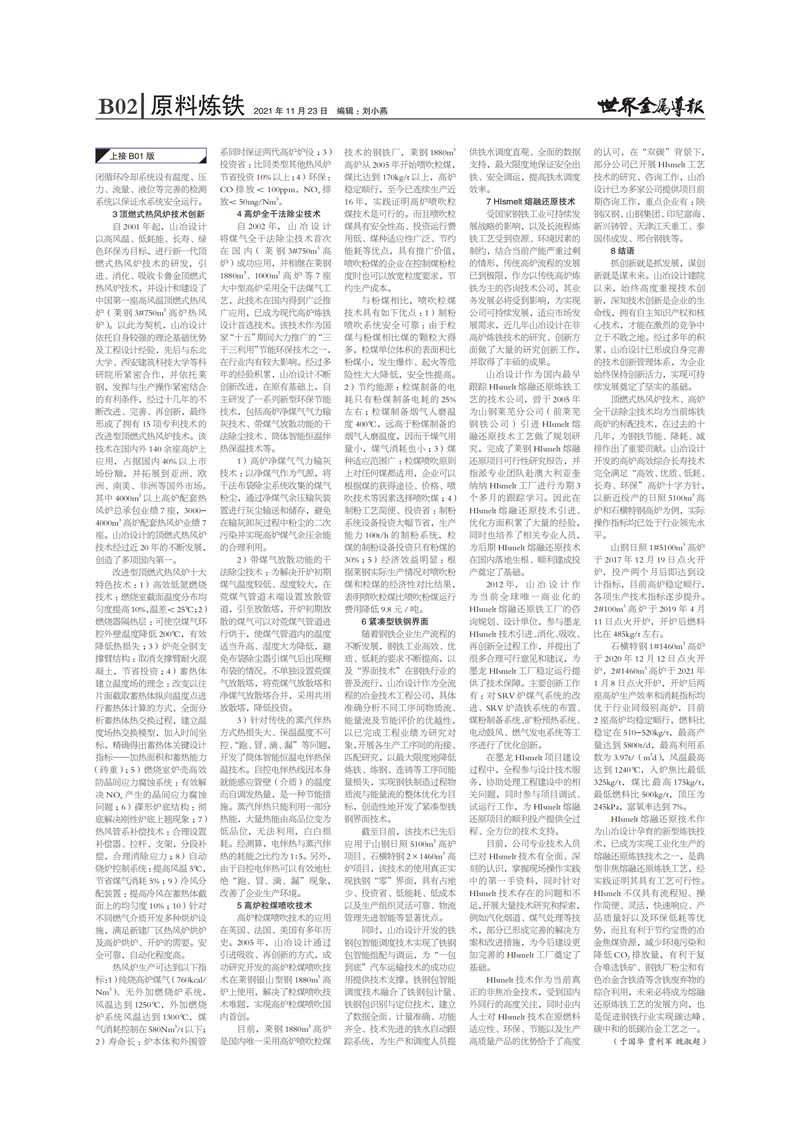 改進型頂燃式熱風爐技術