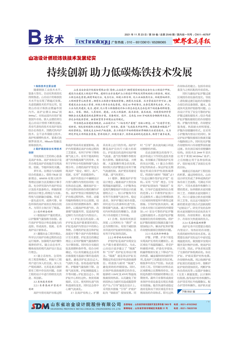 智能環保大型高爐技術
